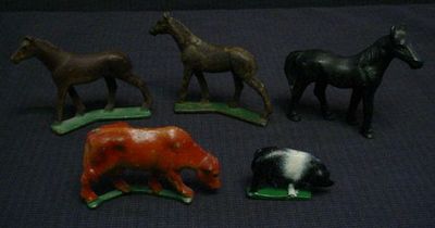 Title (ebay affiliate link): LOT 5 VINTAGE CAST IRON CHRISTMAS GARDEN ANIMALS L@@K