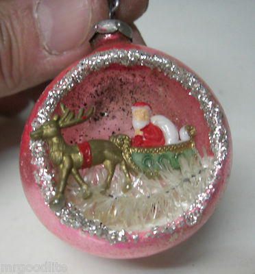 Title (ebay affiliate link): Old SANTA SLED REINDEER Scene Indent Glass Christmas Ornament