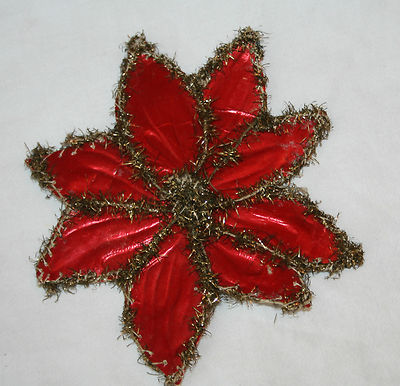 Title (ebay affiliate link): Early Home-Crafted Poinsettia, outlined with Silver Tinsel. Christmas Ornament
