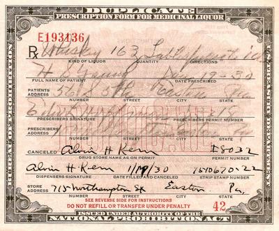 Title (ebay affiliate link): Antique PROHIBITION Medical WHISKEY PRESCRIPTION History Doctor Pharmacy Bar PA