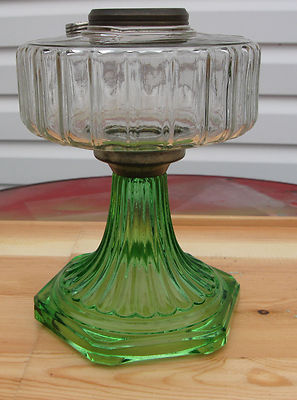 VINTAGE ALADDIN LAMP WITH BEAUTIFUL COINTHIAN GREEN BASE