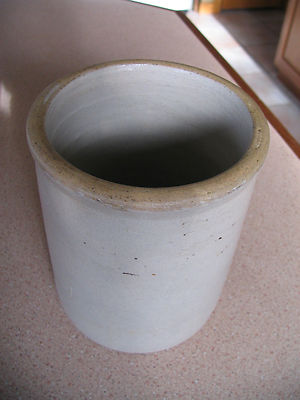 Antique primitive Stoneware Pottery kitchen Crock vintage HTF small size