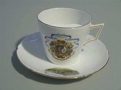 1911 Shelley King George V Coronation Mustache Cup & Saucer Festival of Empire