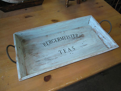 Wooden Tray With Iron Handles 12x22 Blue Milk Paint
