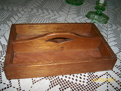 Vintage WOOD Cutlery Tray 12" x 7 3/4" OAK SIDES and DIVIDER Pine Bottom