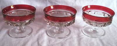 Lot of 3 Ruby Rimmed Desert Dishes Depression Glass ??