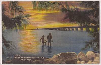 Title (ebay affiliate link): Florida Postcard Sunset Scene Overseas Highway Couple Walking in Water Linen