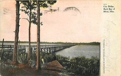 Title (ebay affiliate link): BILOXI MISSISSIPPI CITY BRIDGE BACK BAY OLD 1908 POSTCARD VIEW