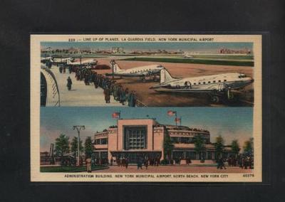 Vintage Postcard Linen Airplanes New York Airport La Guardia Field