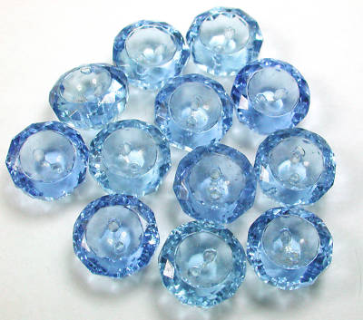 12 Vintage Depression Glass Buttons Blue Faceted Border