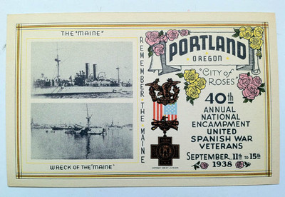 Title (ebay affiliate link): Spanish US War Veterans Reunion Postcard 1938 Portland Oregon Remeber The Maine