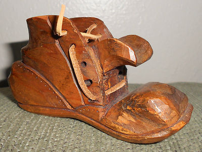 Primitive Hand carved wood shoe or work boot
