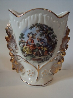 ANTIQUE PORCELAIN HAND PAINTED VICTORIAN SCENE GOLD PLATED VASE