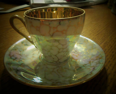 Demitasse Cup & Saucer Pearlized finished with Gold inside cup. made in Germany