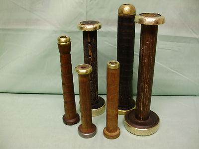 Title (ebay affiliate link): 6 ANTIQUE VINTAGE WOOD TEXTILE MILL SPOOLS BOBBINS WITH BRASS 5 1/4" TI 8 1/2"