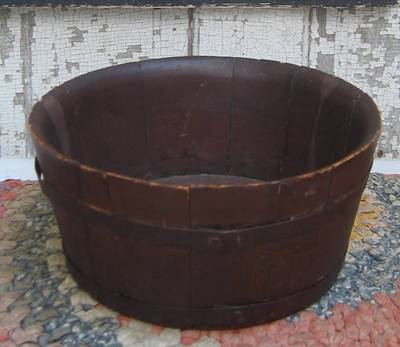 ANTIQUE PAINTED PRIMITIVE WOODEN TUB