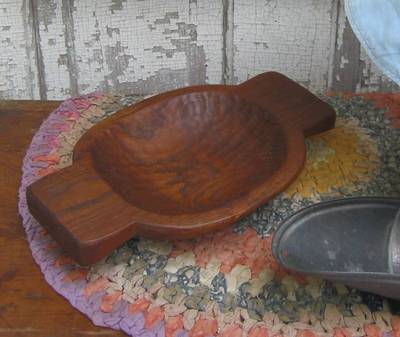 Title (ebay affiliate link): ANTIQUE PRIMITIVE HANDHEWN WOODEN TRENCHER BOWL