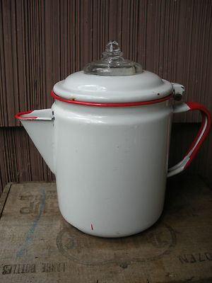 Title (ebay affiliate link): Vintage Enamelware White Coffee Pot With Red Trim And Glass Insert