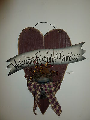 Welcome Friends & Family Sign,Country,Primitive,Home Decor,Sign,Heart,Berries