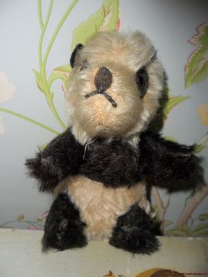 CUTE LITTLE OLD MOHAIR COVERED PANDA MUST SEE !!