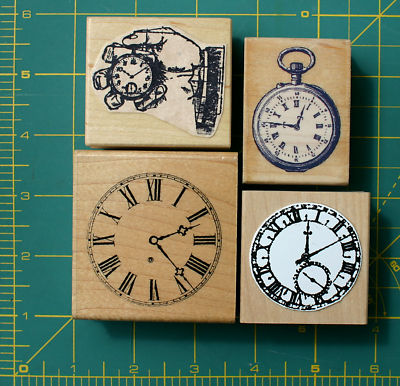 Clock vintage antique pocket watch Rubber Stamp LOT