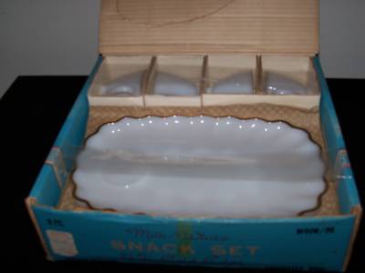 Anchor Hocking Milk Glass Snack Sets 22K Original box