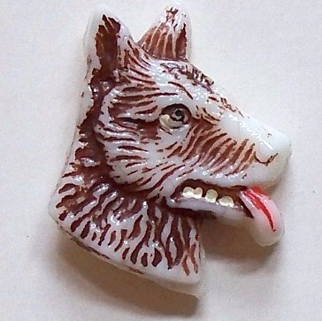 Antique Milk Glass Button / Animal / Wolf or Dog