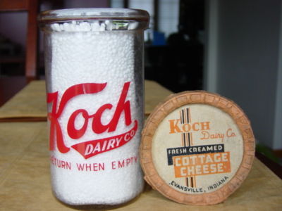 KOCH dairy INDIANA Ind. milk bottle cottage cheese jar