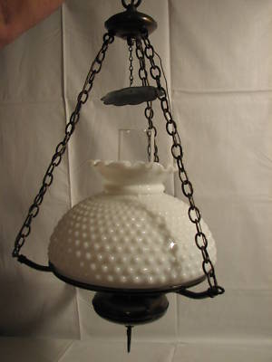 Old Hobnail Milk Glass Hanging Lamp Light Lite Ceiling