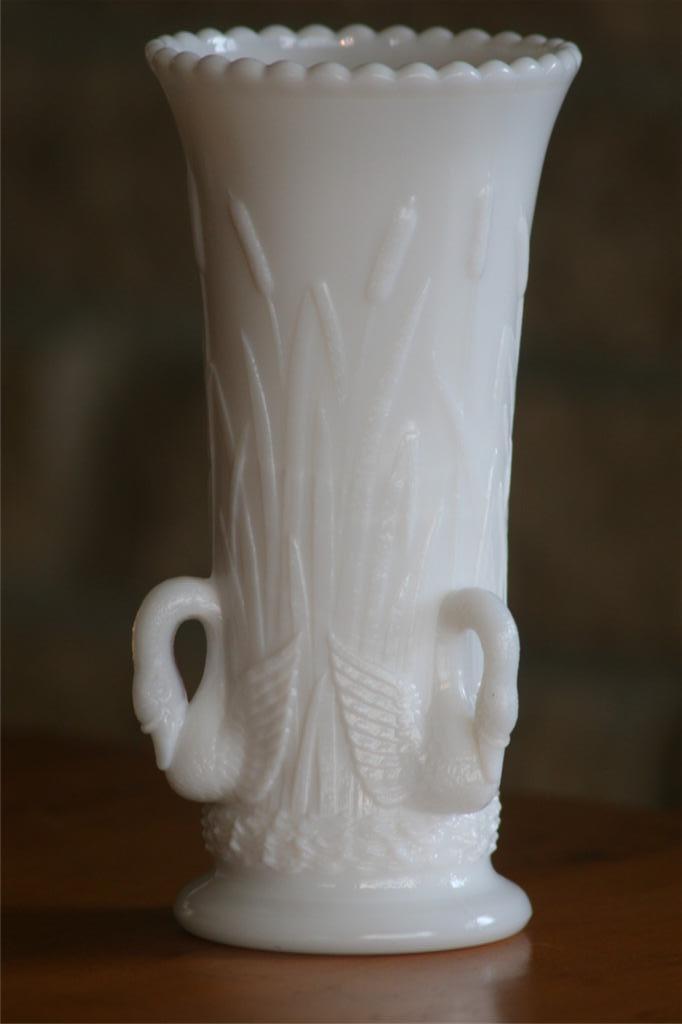 Westmorland Milk Glass Vase with Swans 6.5 inches high