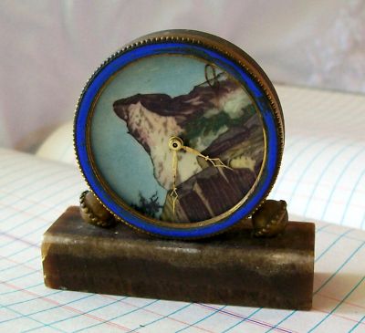 Title (ebay affiliate link): AnTIqUe Miniature Marble Enamel Wind Up Clock PreCIoUs!