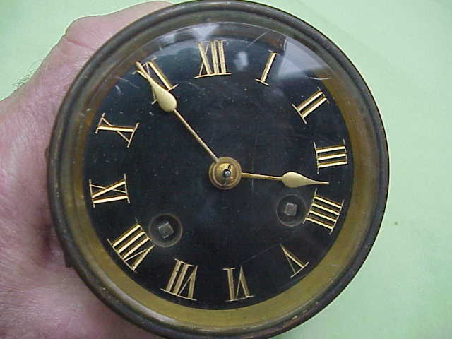 ANTIQUE FRENCH CLOCK MECHANISM BLACK DIAL BRASS #186