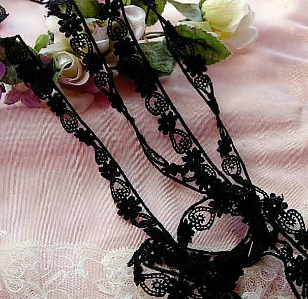 Antique Victorian Cotton Ornate Floral Doll Lace Trim