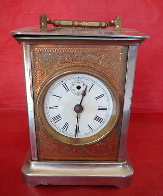 ANTIQUE 1887 WATERBURY Alarm CARRIAGE Ornate CLOCK NR