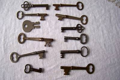 Lot of 12 Antique Keys Skeleton, Furniture, Etc.
