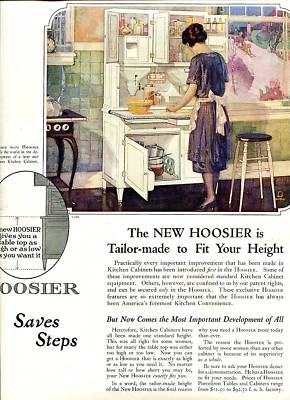 Title (ebay affiliate link): 1922 HOOSIER Kitchen Cabinet COLOR Ad. Fred MIZEN Art