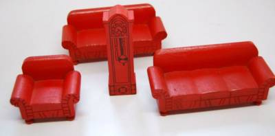 Dollhouse STROMBECKER antique Furniture RED 4pc LR wood