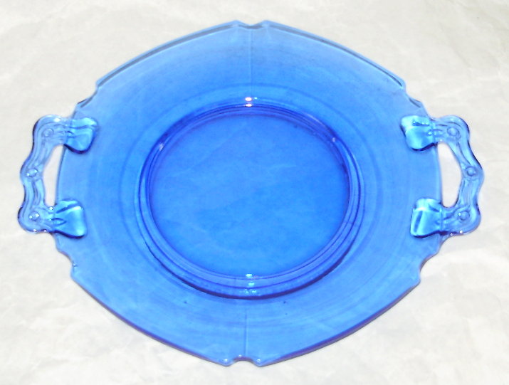 Cobalt 2 Handle Tray/Plate~Mt Pleasant~L E Smith Glass