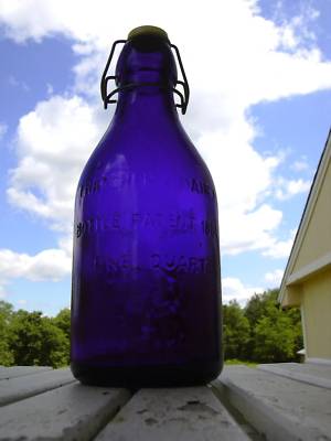 COBALT BLUE THATCHER'S QUART MILK BOTTLE COW ITALY 1965