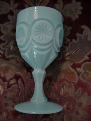 TURQUOISE/AQUA BLUE 7" MILK GLASS/OPALINE GOBLET~maybPV