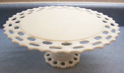 STUNNING VINTAGE MILK GLASS PEDESTAL CAKE PLATE