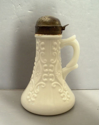 Ornate ANTIQUE Milk Glass SYRUP PITCHER