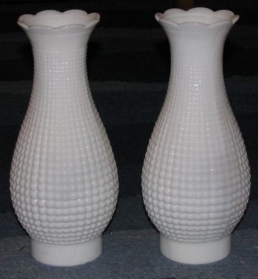 Pr Vintage Milk Glass White Hobnail Hurricane Globes