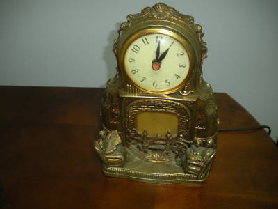 Antique Mantel Clock With Lighted Fire Place Scene