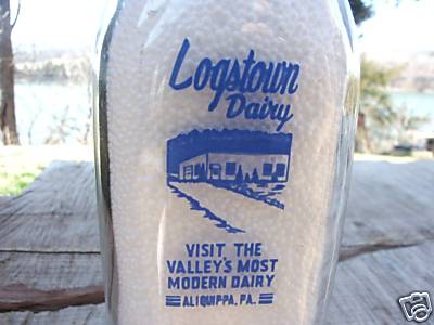 LOGSTOWN DAIRY 1/2 PT MILK BOTTLE-ALIQUIPPA,PA-2 COLOR!