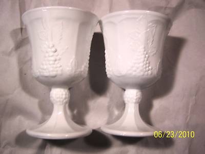 Two (2) Vintage Footed Milk Glass Tumblers Fruit Emboss
