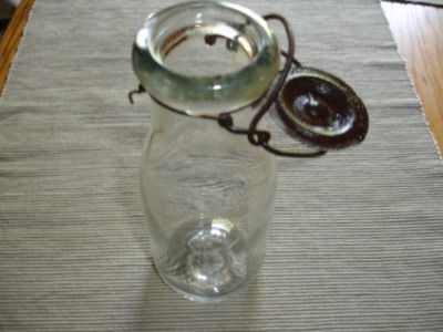 Antique Vintage Milk Cream Bottle with Metal Clamp Lid