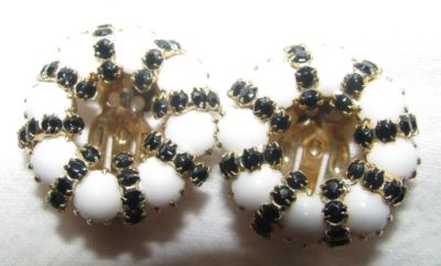 VINTAGE WEISS BLACK RHINES & WHITE MILK GLASS EARRINGS