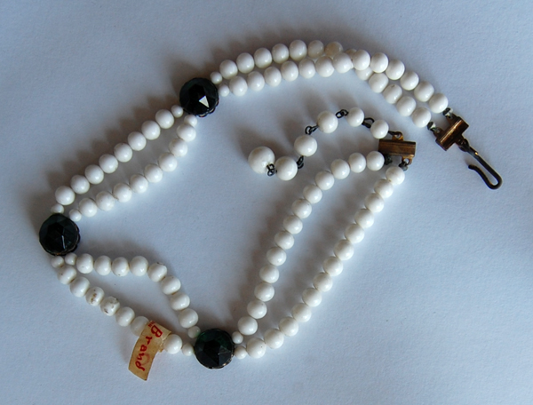 VINTAGE CHOKER JAPAN WHITE MILK GLASS NECKLACE EMERALD
