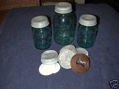 3 Blue PERFECT MASON Fruit Jar w/Lids + 5 BONUS Lids